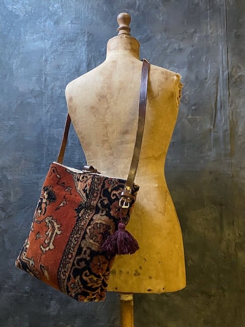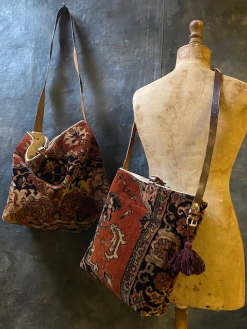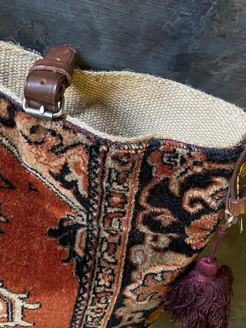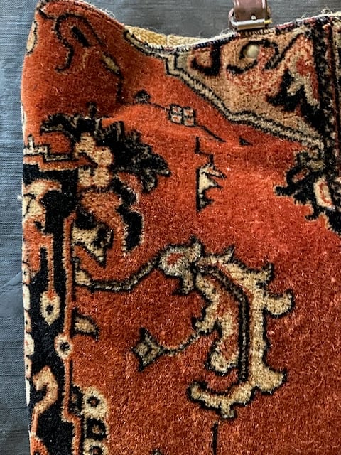 Tapijt/carpet bags. Dating back 100’s of years ago, table carpets or tafel tapijt were often used in many a Dutch home and cafe. They served as tablecloths, coat rack backings and runners for mantelpieces. They were unsuitable to walk on and therefore never lay on the floor. The textile is a pile fabric - like plush and velvet. Often made of mohair, their flexibility, rich color palette and distinctive carpet designs certainly contributed to their popularity.