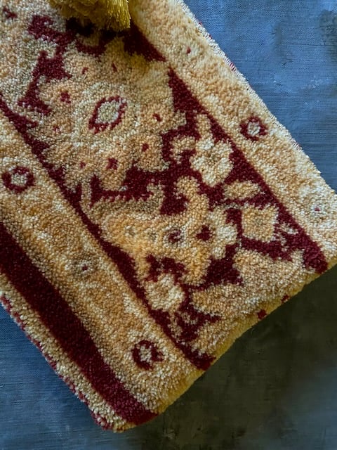 Tapijt/carpet bags. Dating back 100’s of years ago, table carpets or tafel tapijt were often used in many a Dutch home and cafe. They served as tablecloths, coat rack backings and runners for mantelpieces. They were unsuitable to walk on and therefore never lay on the floor. The textile is a pile fabric - like plush and velvet. Often made of mohair, their flexibility, rich color palette and distinctive carpet designs certainly contributed to their popularity.
