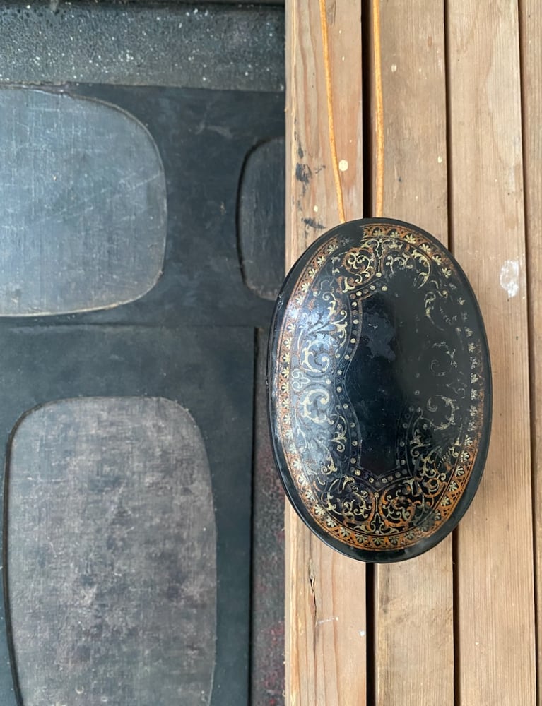 - hung by leather cord