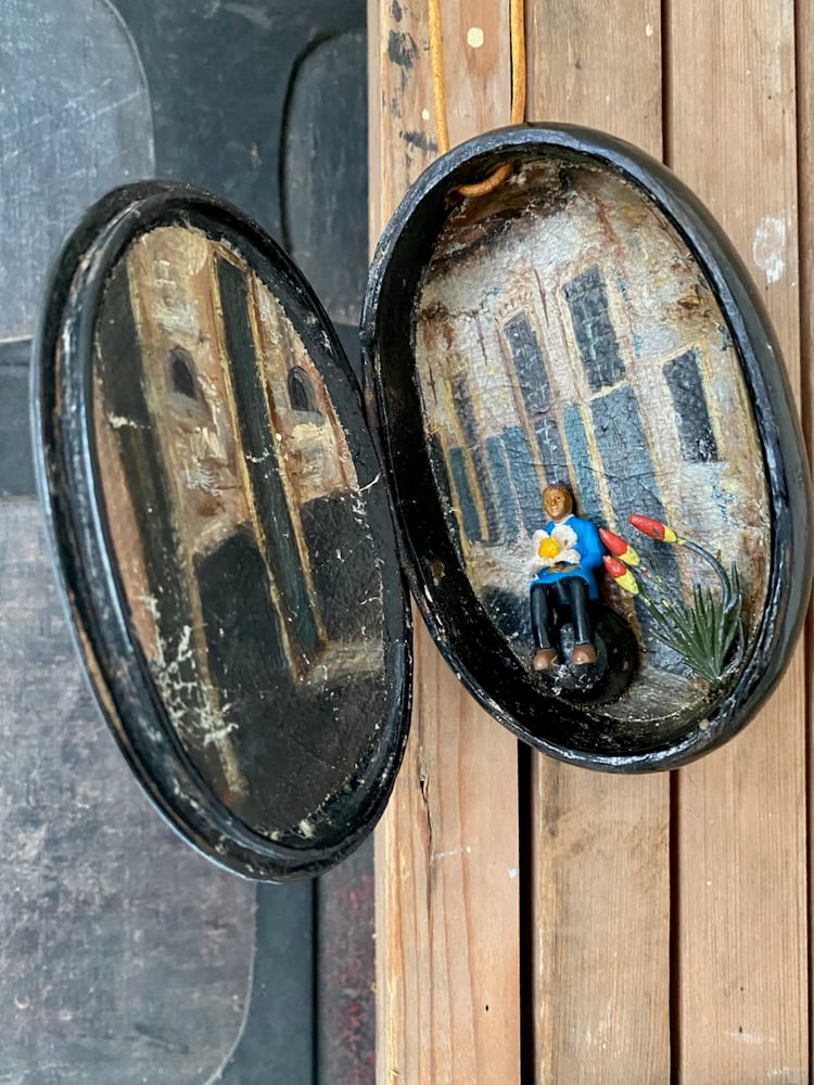 Now many, many moons later I am reliving my childhood. Found items at the markets including beautiful tins, boxes, paintings and figurines creating these little worlds.