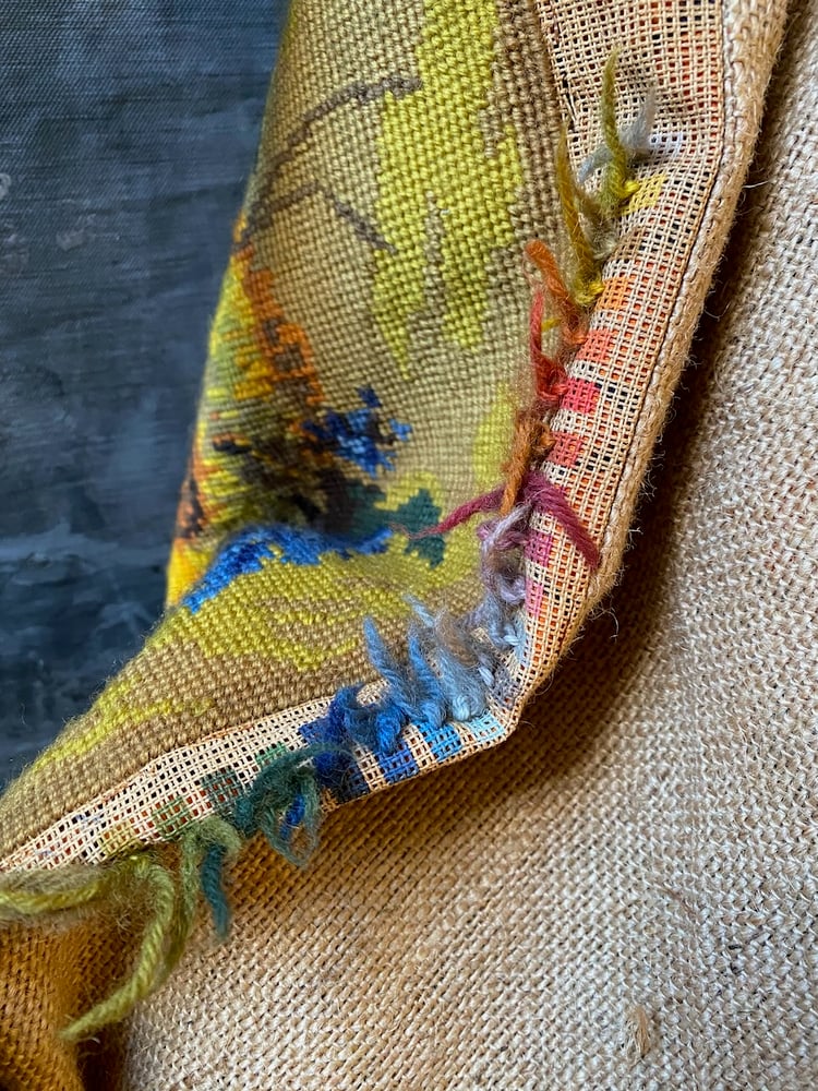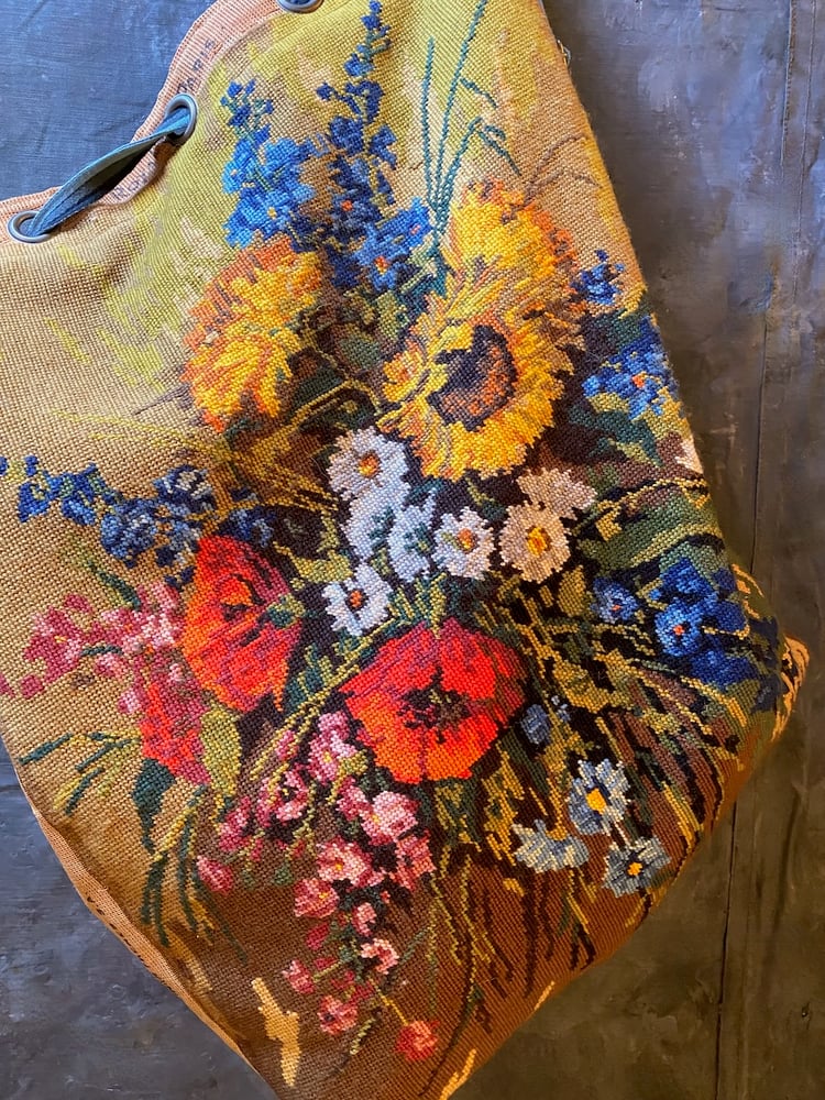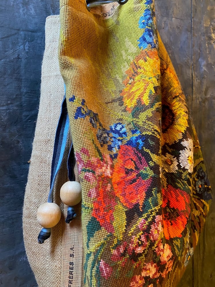 Found at a local market in Amsterdam this lovely emboridered panel from France based off a painting by German artist Gerhard Neswadba has been turned into a large weekend type duffle bag.