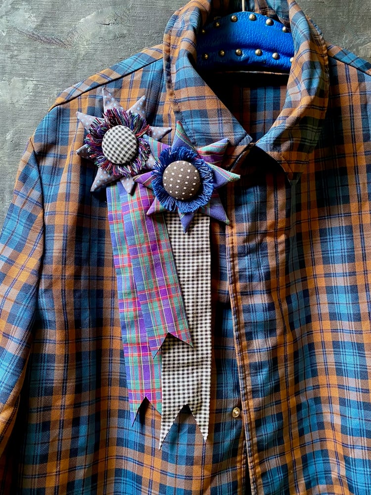 All handmade in Swarm studio using bits and pieces of dead stock materials.